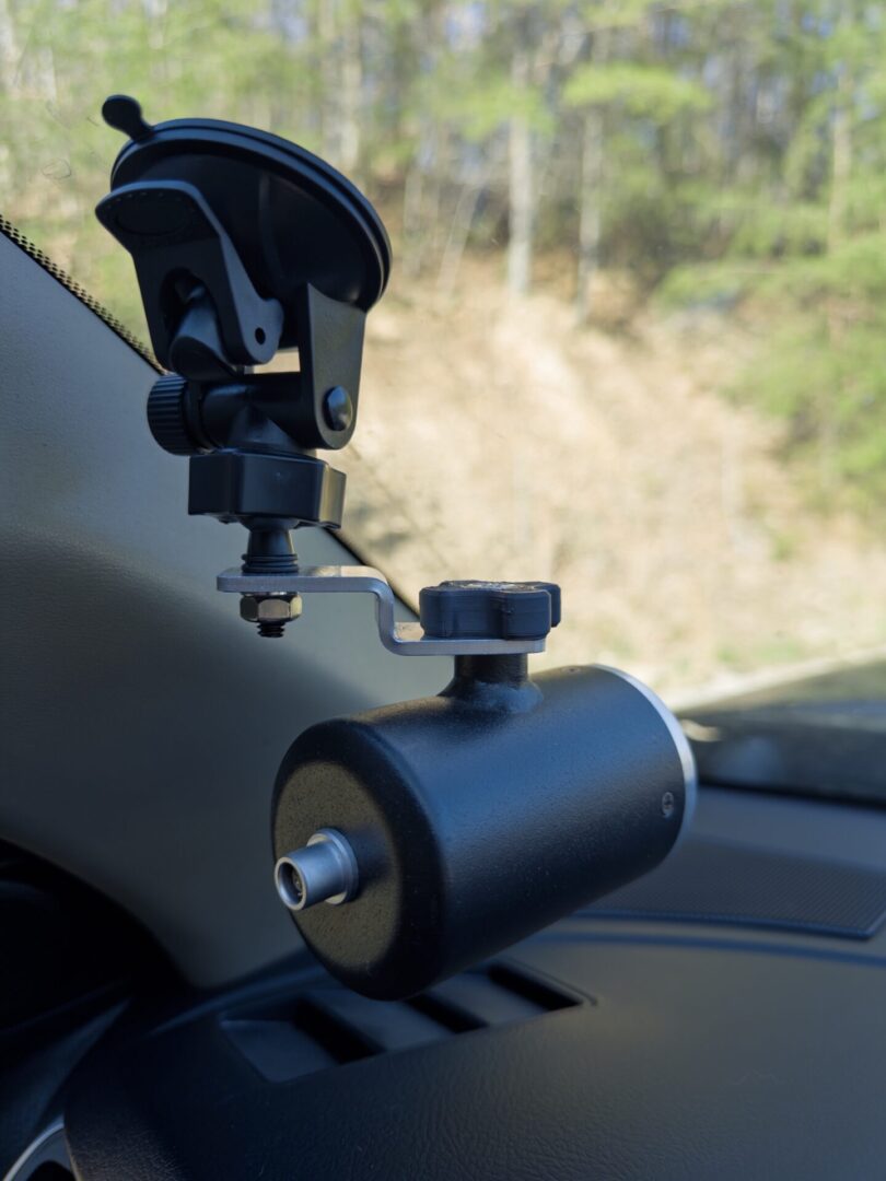 New Suction Cup Antenna Bracket Fastens anywhere on front or rear windshield. No holes to drill. Mounts any radar antenna K or Ka. Stud on bracket screws directly into antenna.